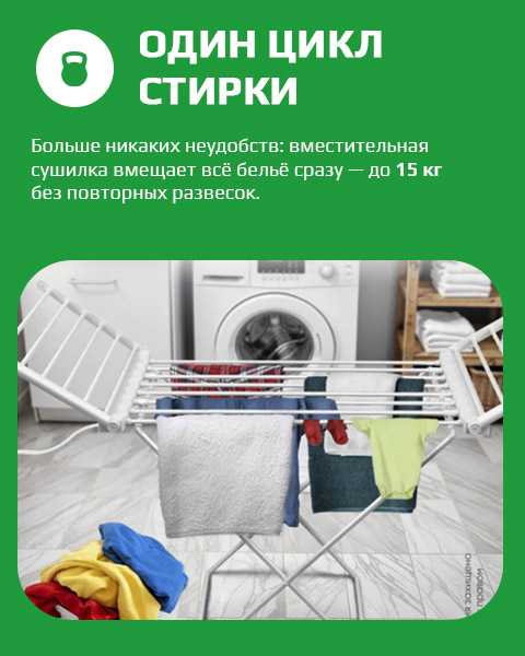 Сушите бельё в 2–3 раза быстрее — идеально для ванной комнаты и небольших квартир.